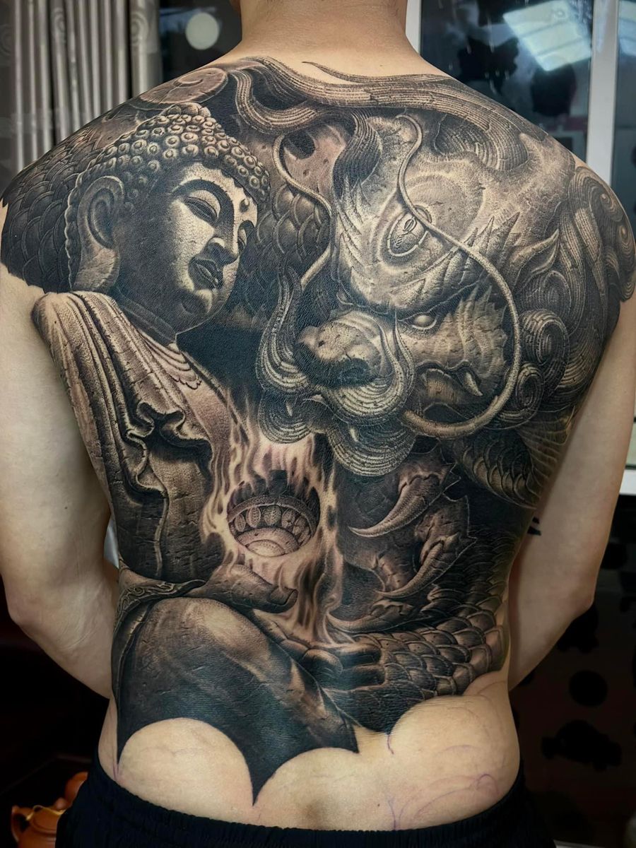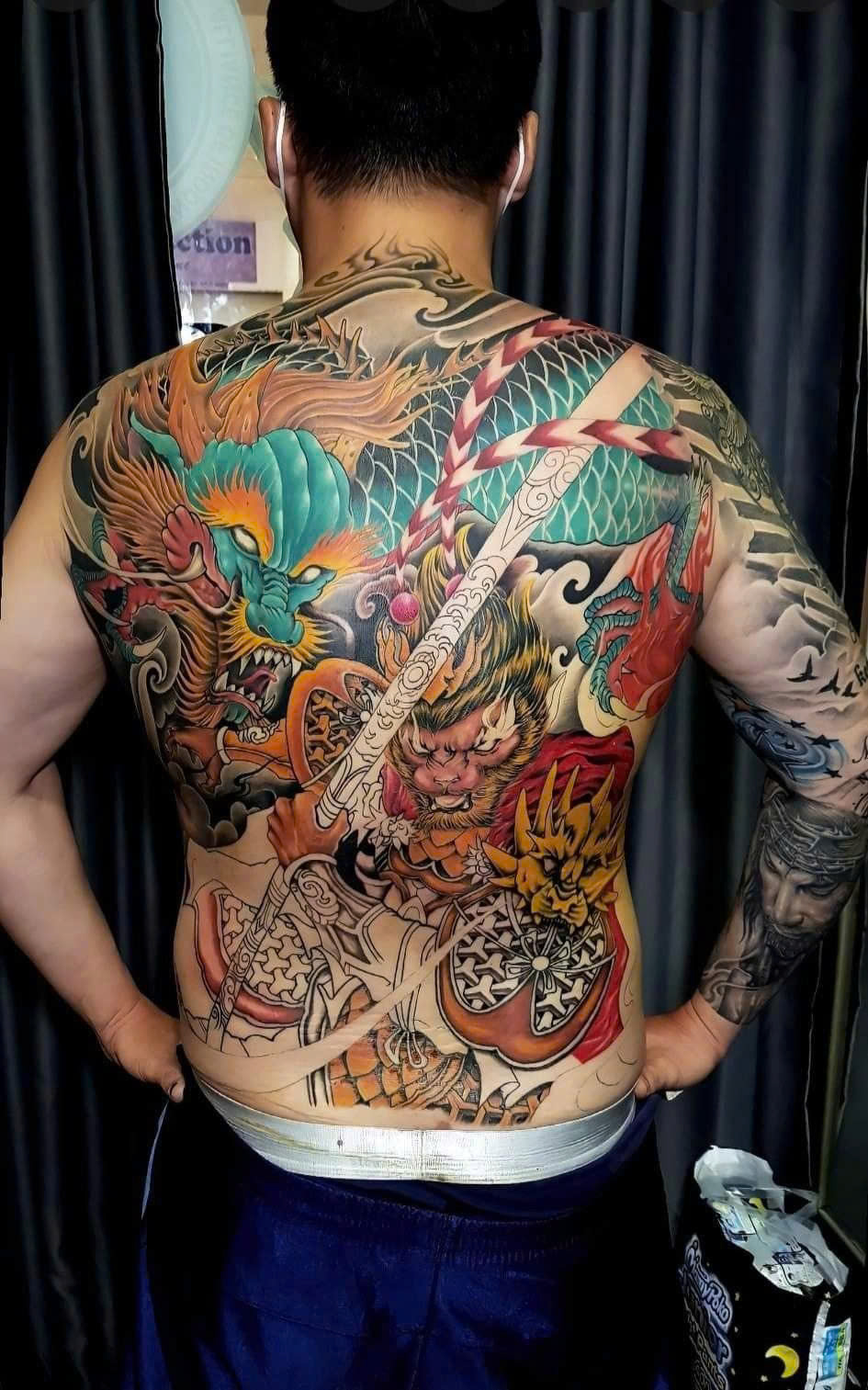 Hình xăm Nhật cổ (Irezumi) là một trong những phong cách xăm nổi tiếng và lâu đời nhất thế giới. Đặc trưng bởi các họa tiết rồng, cá chép, samurai, geisha, hoa anh đào, sóng nước… mang đậm chất văn hóa Nhật Bản. Thường được thực hiện với diện tích lớn như full tay, lưng hoặc ngực, hình xăm Nhật cổ không chỉ mang tính nghệ thuật cao mà còn gắn liền với triết lý nhân sinh: sức mạnh, lòng trung thành, sự bảo vệ và vẻ đẹp tinh thần. Đây là phong cách đòi hỏi kỹ thuật cao, tỉ mỉ và nhiều thời gian thực hiện.